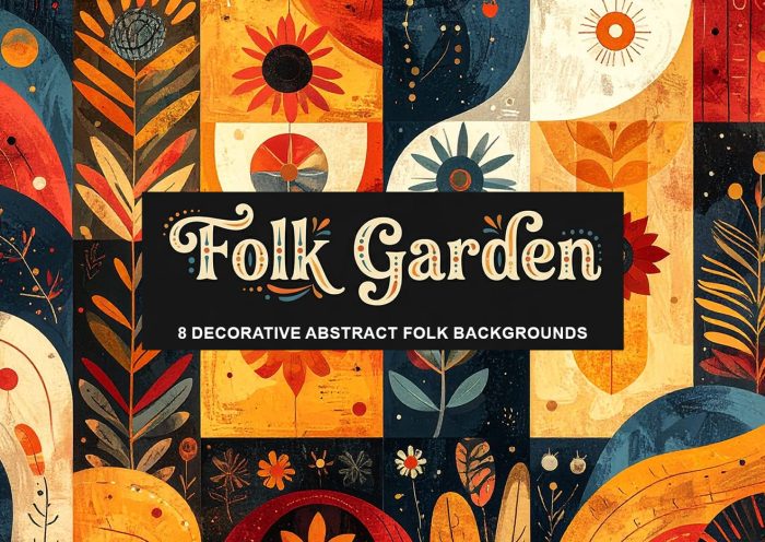 Folk Garden: 8 Free Decorative Abstract Folk Backgrounds