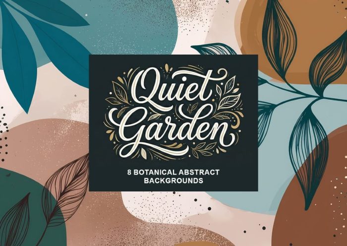 Quiet Garden is a collection of warm, textured botanical abstract, ai-generated, Free background papers inspired by calm natural forms and modern decorative design. Each piece blends simplified leaf illustrations with soft organic shapes, layered paint…