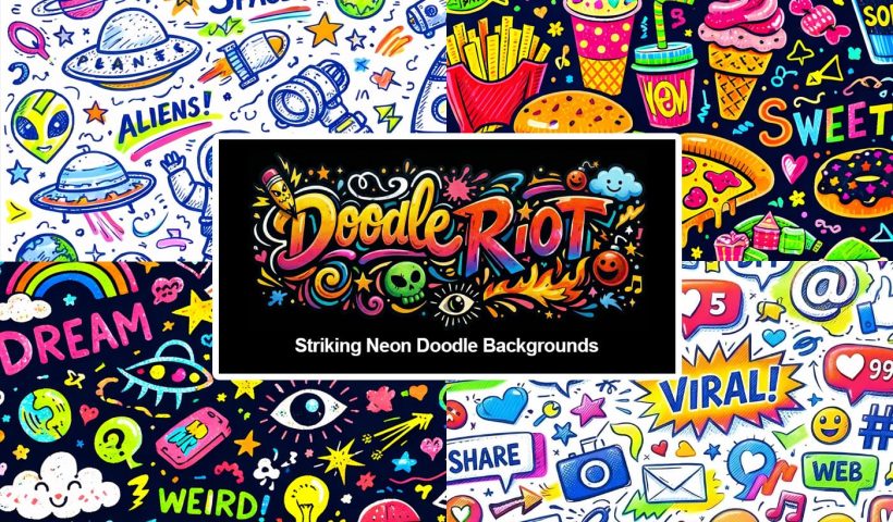 Doodle Riot is a collection of striking ai-generated neon doodle backgrounds packed with energy, color, and controlled chaos. Each design is filled edge-to-edge with hand-drawn elements, mixing blue ink lines with bold highlighter strokes to…