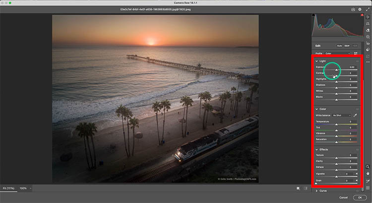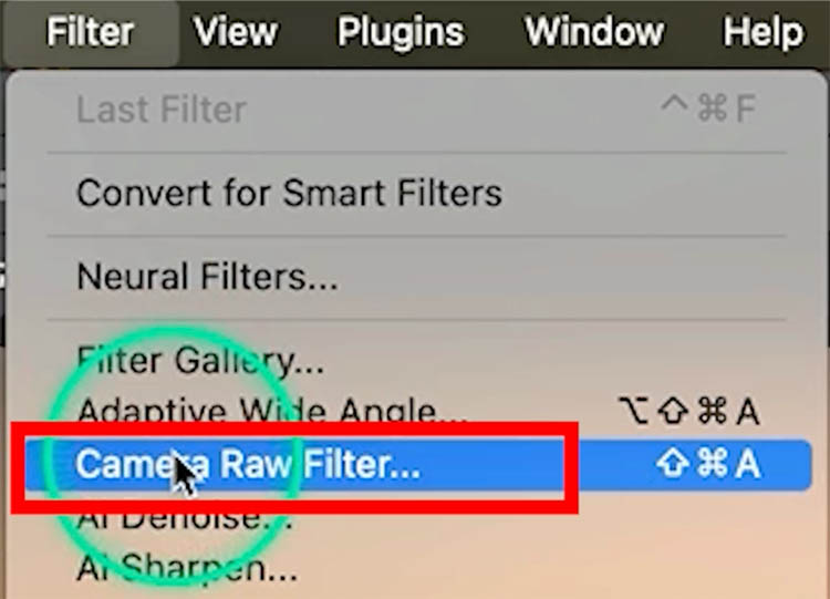 In Photoshop, open a photo and then choose Filter>Camera RAW Filter