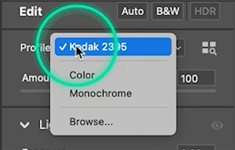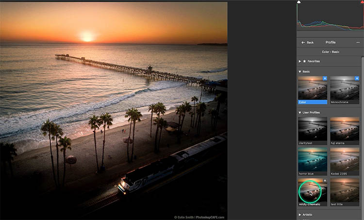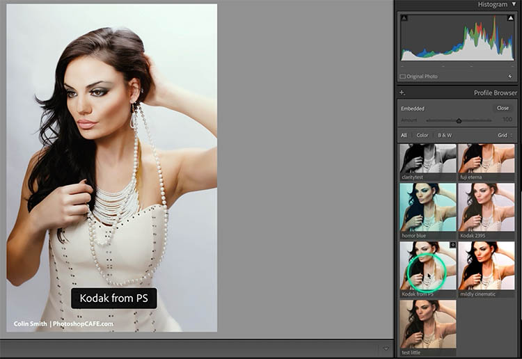 As you roll over the thumbnails, you’ll see the photo change. Click on a Profile to apply it.