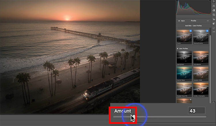 Notice, there is also an amount slider in Lightroom.