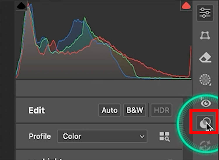 To remove the custom Profile, click on Profile and choose Color in the Edit panel.