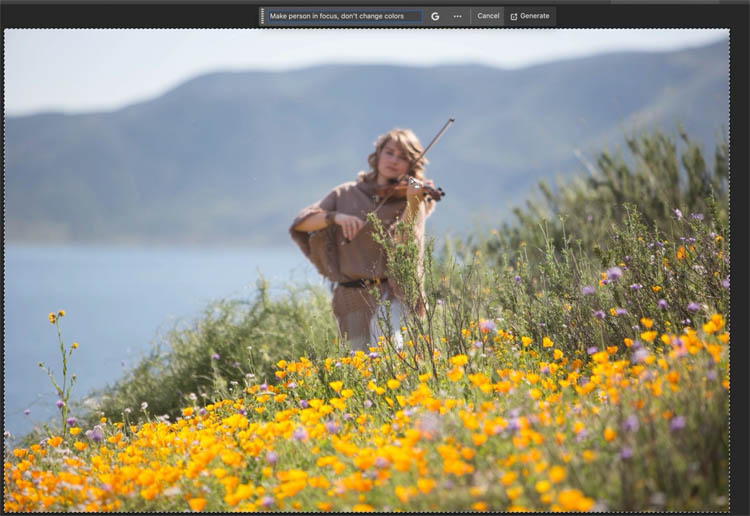 Prompt: “Make person in focus. Don’t change colors.”