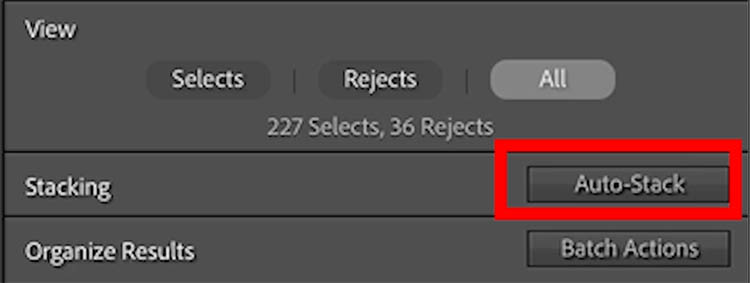 We can stack by time, or visual similarity. This is a great way to split up a shoot into individual framings or costume changes.