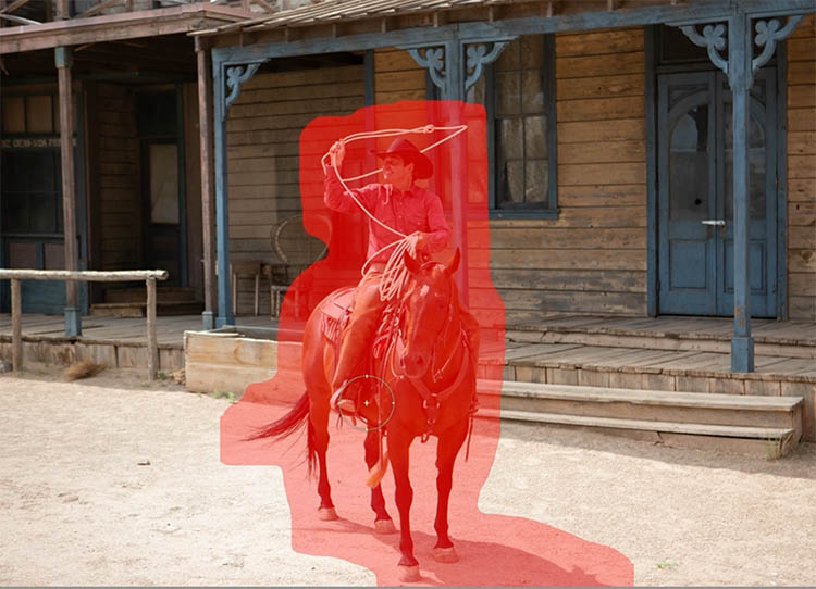Make a selection around the cowboy. Notice the tool automatically detects and includes the shadow.