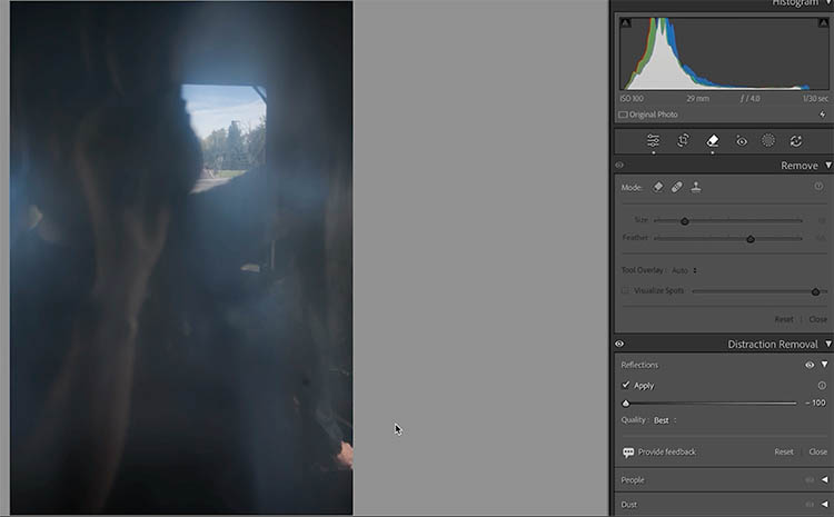 The remove tool isn’t new in Lightroom. However, one challenge is also removing the shadow or the reflection.