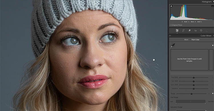 Let’s try this same tool on a portrait.  It works especially well to smoothen out color inconsistency in skin.  This model has great skin, so we won’t see a huge difference in this image, but you will still notice it.
