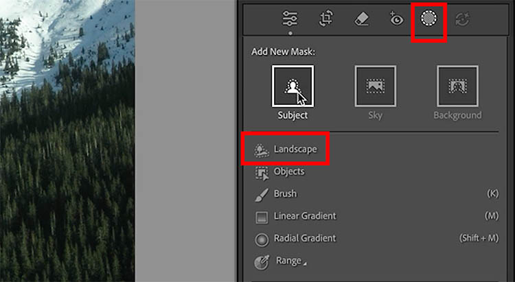 Choose the Mask button. Choose Landscape.