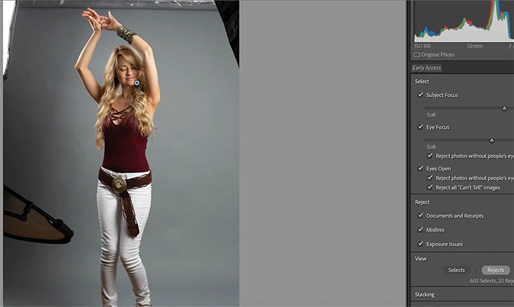 Using ai, Lightroom is able to analyze your photos for certain characteristics and then sort them based on those criteria. This saves a lot of time after shoots sorting out the keeps from the not so good ones. This works best with portrait photos right now, hopefully more features will be added in time.