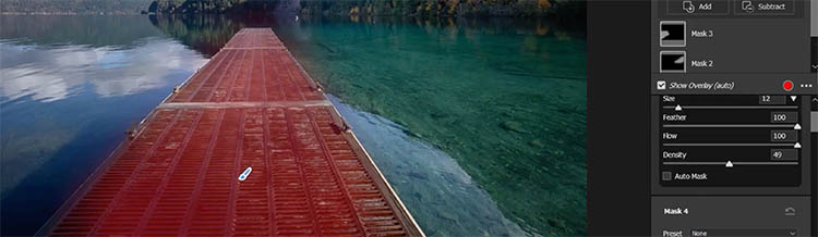 Tip: Turn on the mask overlay while painting so you can clearly see where the mask is applied (the red part).